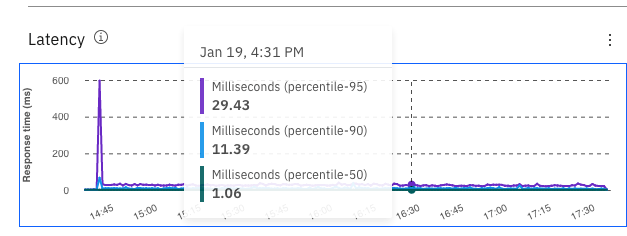 Flyover the Latency Graph. You’ll see a graph showing the latency shown in different percentiles (50th, 90th, and 95th). By using percentiles, you get a much better idea how the applicaiton is performing.